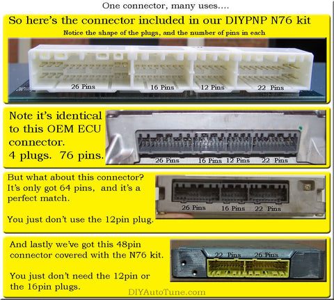 This info graphic displays the types of ECU’s the Nippon Denso 76 pin DIYBOB fits: